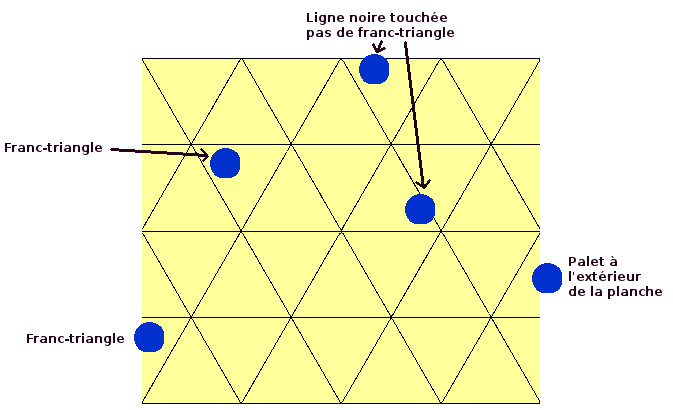 La situation-problème :Le jeu du franc-triangle consiste à jeter un palet sur une planche pavée de triangles équilatéraux et à parier sur la position du palet. Si le palet ne touche pas une ligne noire de la planche, on dit qu'il y a franc-triangle. Les fichiers en téléchargement sont disponibles en bas de page |