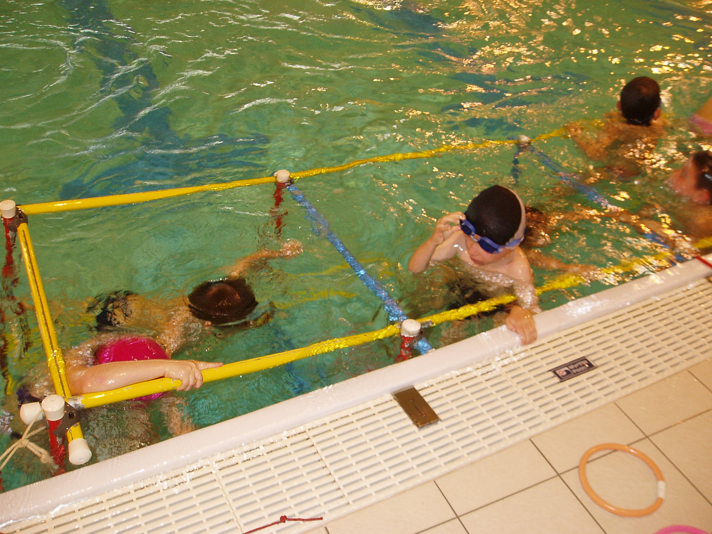 Objectif(s) visé(s) : se déplacer sous l'eau en s'aidant avec les mains, les montants de la cage et les cordes |