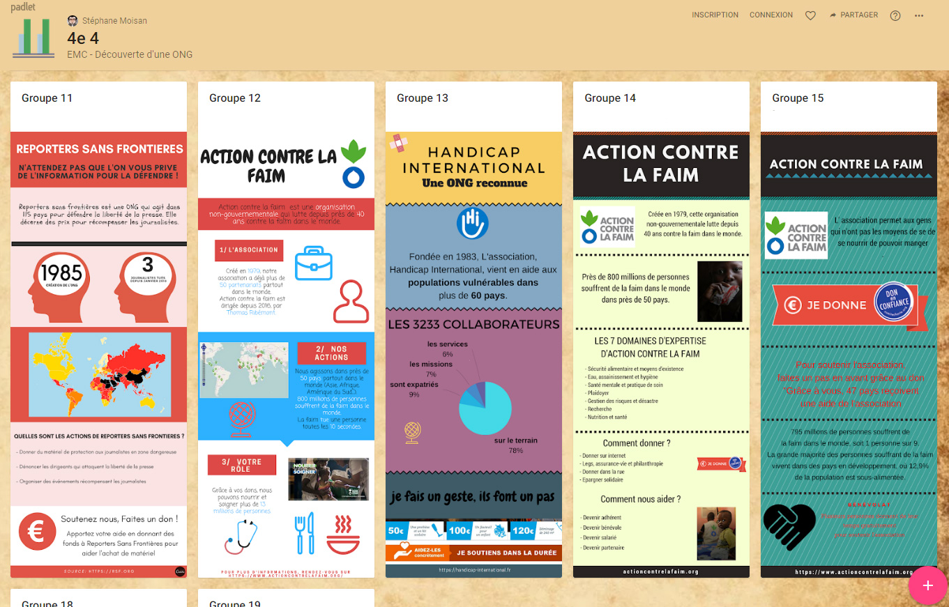À l'inverse, ceux-ci encouragent la continuité pédagogique. L'utilisation d'outils en ligne, pour produire des infographies ou pour créer des murs collaboratifs, rend possible l'imbrication temps scolaire et extra-scolaire. Ainsi, le dépôt d'un tutoriel et son appropriation par l'élève en amont permet une plus grande efficacité dans le travail en classe. De même, la possibilité d'achever le travail avant de la déposer sur un espace de partage encourage l'autonomie et valorise les élèves les plus motivés.