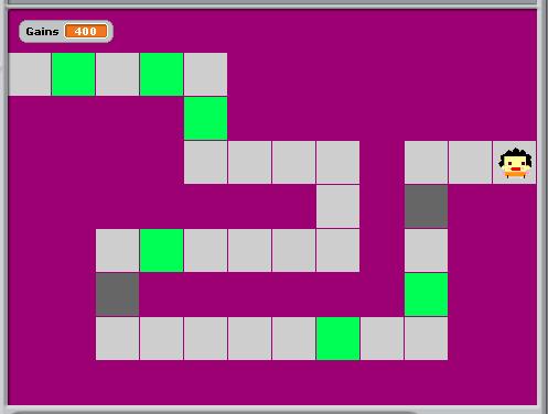 Ecriture d'un sous-script pour les déplacements relatifs aux parties strictement identiques du parcours. Programmation et gestion d'une variable « gains », d'un bruitage en cas de bascule dans un souterrain, et de l'affichage de la durée de parcours.