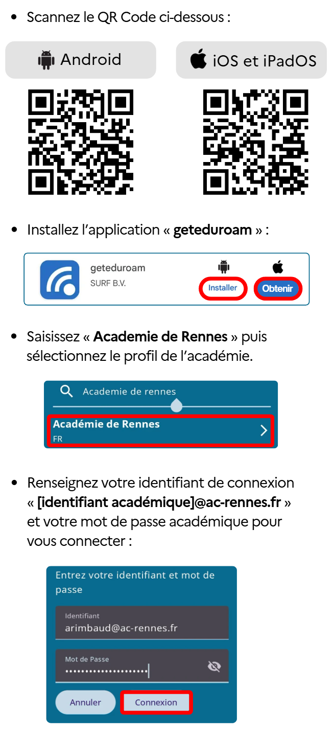 Identifiants de connexion pour le personnel de l'académie de Rennes