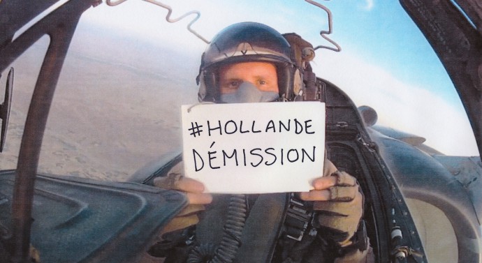 En septembre 2014 des milliers d'internautes se sont partagés l'image d'un pilote de chasse qui brandissait une feuille de papier sur laquelle on lisait la mention "Hollande Démission".