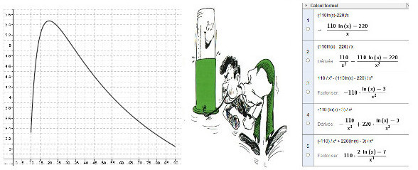 Utiliser des outils numériques pour rechercher et interpréter un point d'inflexion dans une situation concrète modélisée par une fonction comportant un logarithme.