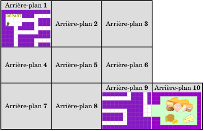 Ce labyrinthe est composé de dix arrières-plans et la souris va passer d'un arrière-plan à un autre en se rapprochant des bords.