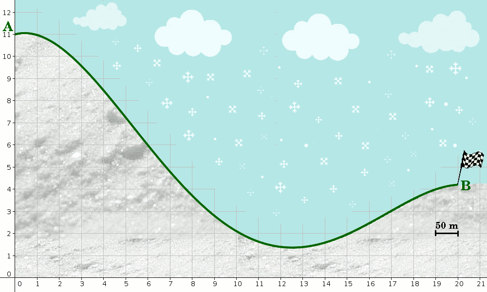 Niveau et Durée :Une séance en classe de seconde Objectif pédagogique :Réinvestir le codage de la représentation graphique d’une fonction La situation-problème :Une piste de ski a été modélisée ci-contre sur l’intervalle [0 ; 20] par une fonction f. Les fichiers en téléchargement sont disponibles en bas de page |