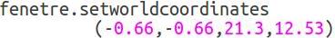 4ème étape : Définir le repèreLa difficulté est de le rendre cohérent avec celui de l’image de fond. Il faut accepter de tâtonner pour définir les points A(-0,66 ;-0,66) et B(21,3;12,53) qui correspondent aux sommets opposés dans l’image ci-contre. |