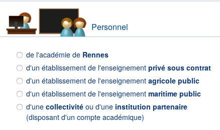 Vous êtes PERSONNEL de l’académie de Rennes, d'un établissement de l'enseignement catholique, de l'enseignement maritime ou agricole, d'une collectivité