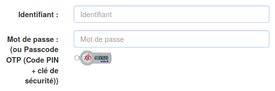 Si vous disposez d'une clé OTP, vous pouvez vous également l'utiliser pour vous connecter, ce qui vous permet d'accéder aux applications nécessitant une authentification forte dans le portail des applications métiers ARENA.