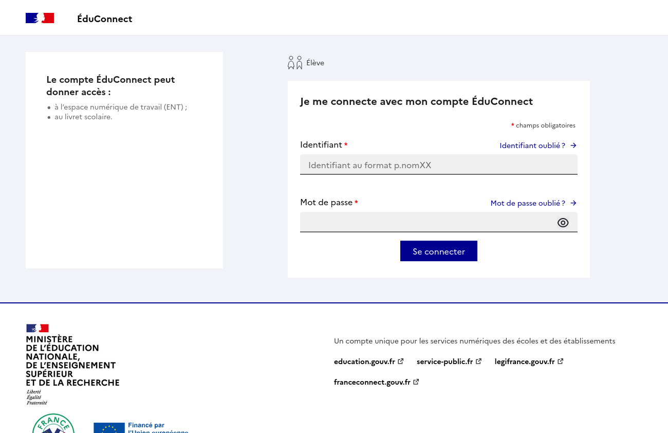 - Élève (compte ÉduConnect) :