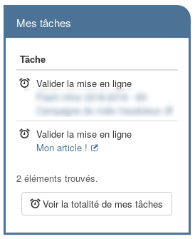 - sur votre bureau Toutatice, dans une zone "Mes tâches" qui s'affiche en haut à droite de votre bureau Toutatice :