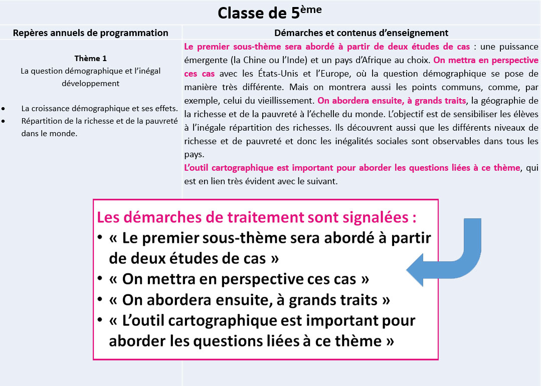 Un exemple avec le thème 1 du programme de géographie 5e :