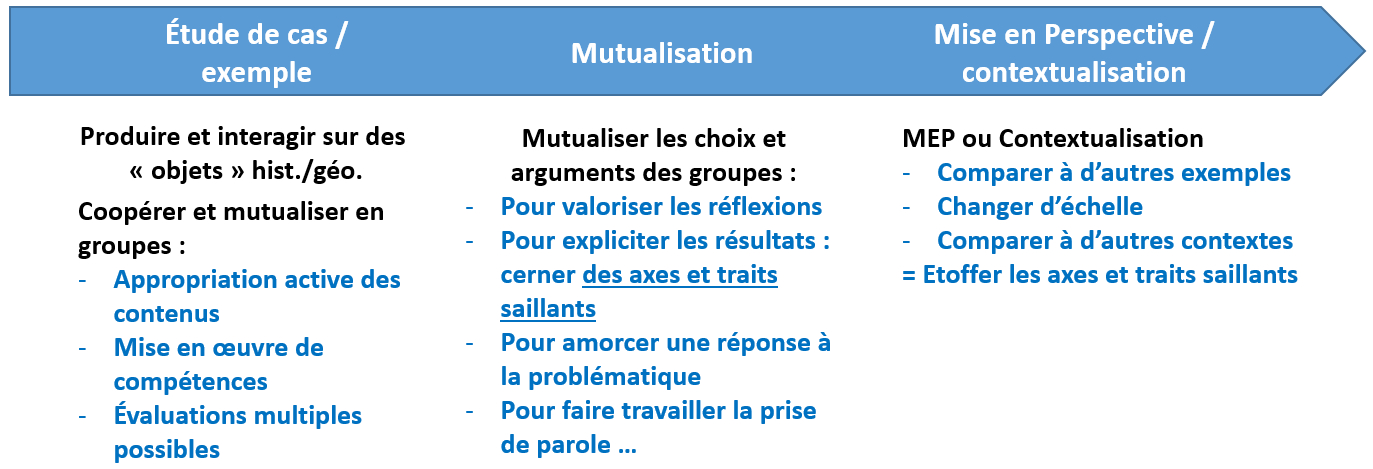 • À avoir en tête : La nécessité de faire la distinction entre : l’évaluation des travaux de groupes (productions) ET la mutualisation = début de réponse à la problématique. Une piste : demander aux groupes de développer 2 à 3 arguments issus de leurs travaux. Ce sont les arguments que l’on mutualise.