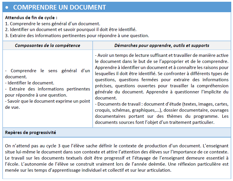 A télécharger > Tableau de progressivité des compétences HG : Format Word / Format PDF (à retrouver également tout en bas de la page)