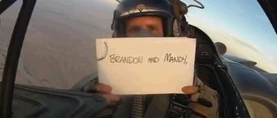 Cette photo est une photo truquée. L'image est un montage réalisé à partir d'une capture d'écran d'une vidéo réalisée en 2013 par un pilote de chasse américain pour le mariage de son frère. Ce pilote avait une feuille avec écrit "Brandon and Mandy". Les internautes ont fait une capture d'écran et ont remplacé le texte par "Hollande démission".