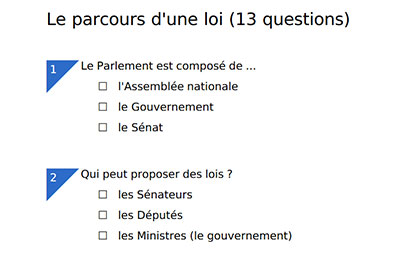 Quand ils ont fini, ils font un QCM pour tester leur compréhension du parcours d'une loi. J'utilise avec eux le site EvalQCM, mais cette phase peut se faire avec d'autres services du même type ou bien en version papier.