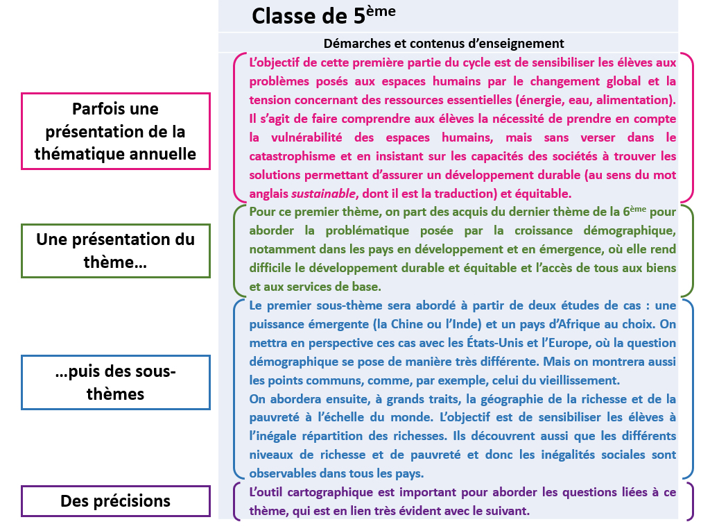 Un exemple avec le thème 1 du programme de géographie 5e :