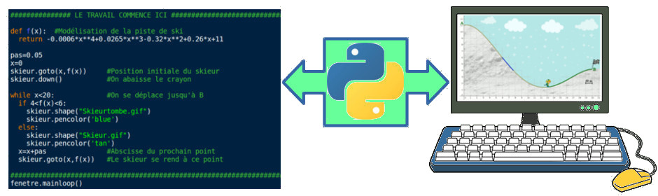 L’objectif est de faire suivre et retracer la courbe représentative d’une fonction (la piste de ski) par un mobile (le skieur).