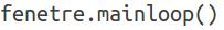 | En toute fin de script, il faut penser à écrire l’instruction fenetre.mainloop() qui permet la gestion de cette fenêtre graphique, notamment la fermeture par clic de souris. | ![]() |
