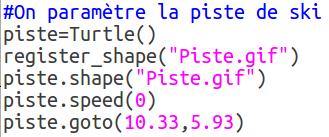 5ème étape : Définir l’arrière planComme pour Scratch, l’arrière plan est un lutin particulier appelé piste et défini avec la première instruction. |