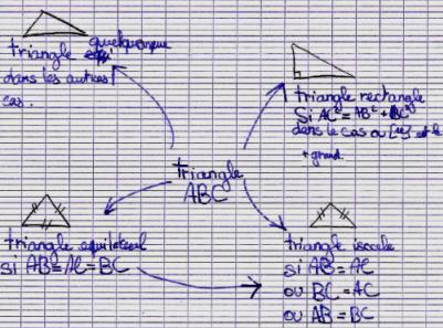 La carte mentale est à faire en amont pour bien structurer la pensée des élèves. En effet, certains groupes essaient de programmer en conjecturant graphiquement s'il y a un angle droit et non en utilisant les longueurs des côtés,