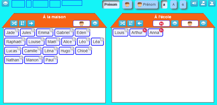 - Option : mélange ou tri alphabétique des étiquettes prénoms