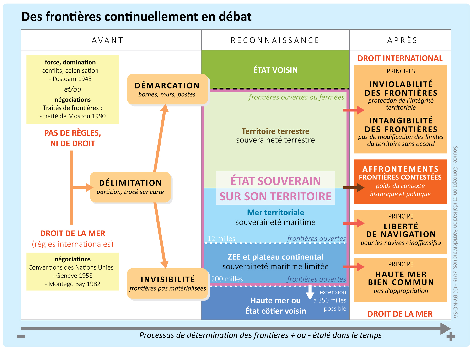 A la fin de l'axe, les élèves doivent comprendre que les frontières avant ou après leur délimitation font toujours l'objet de débat et ce malgré le droit.