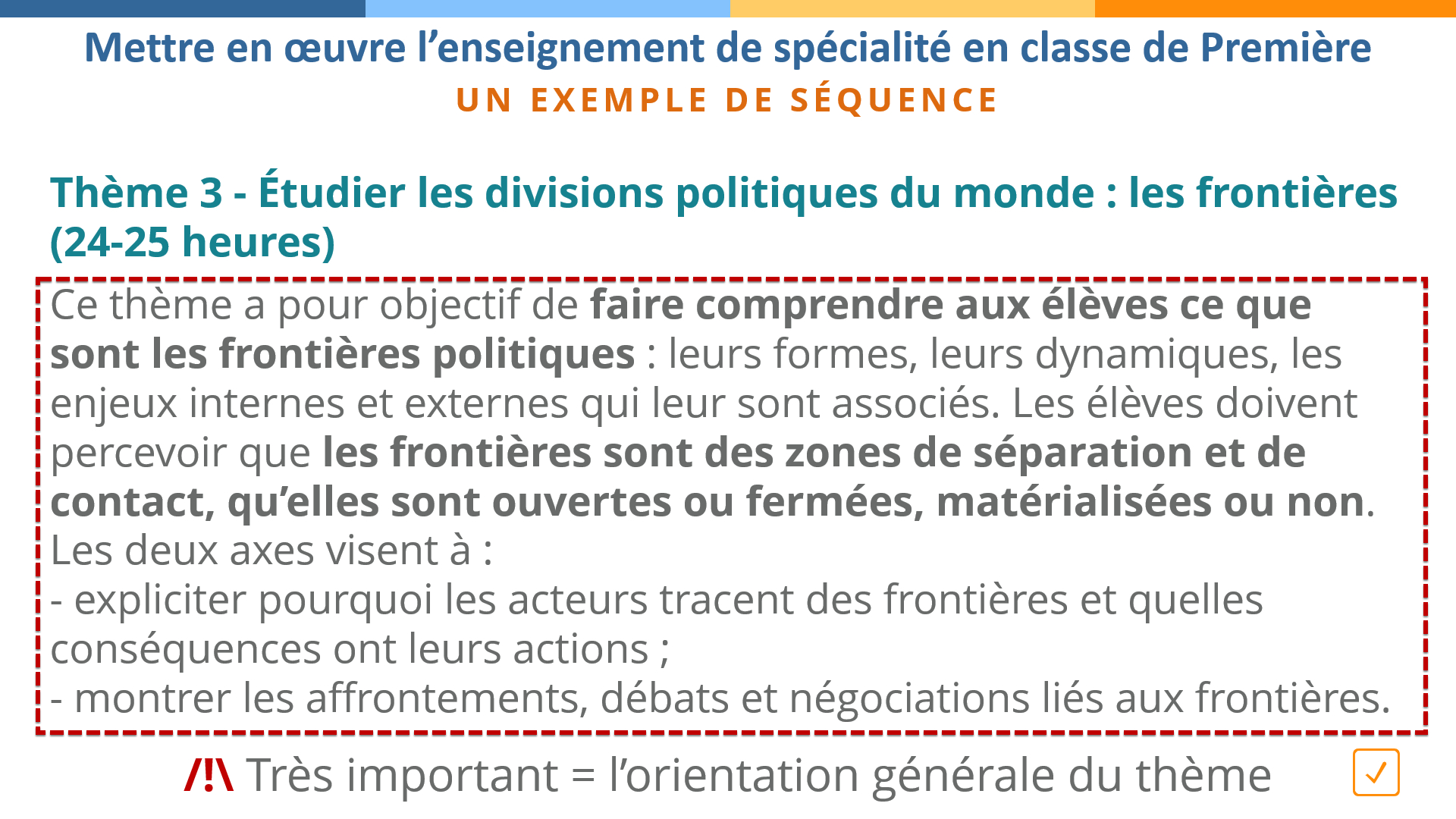Un exemple avec le thème 3 - Étudier les divisions politiques du monde : les frontières
