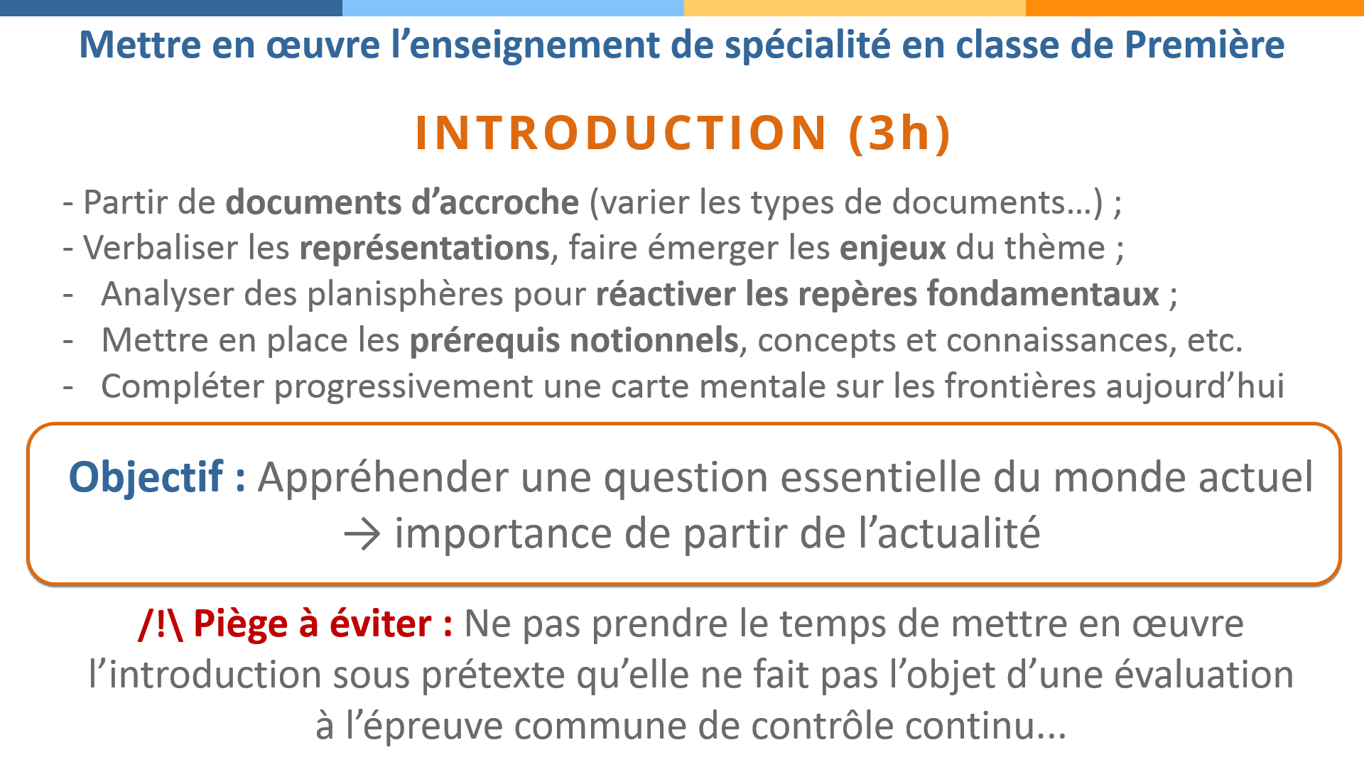 /!\ L'introduction ne constitue pas un temps fort de transmission de connaissances, de contenus.