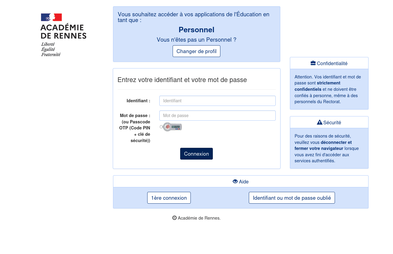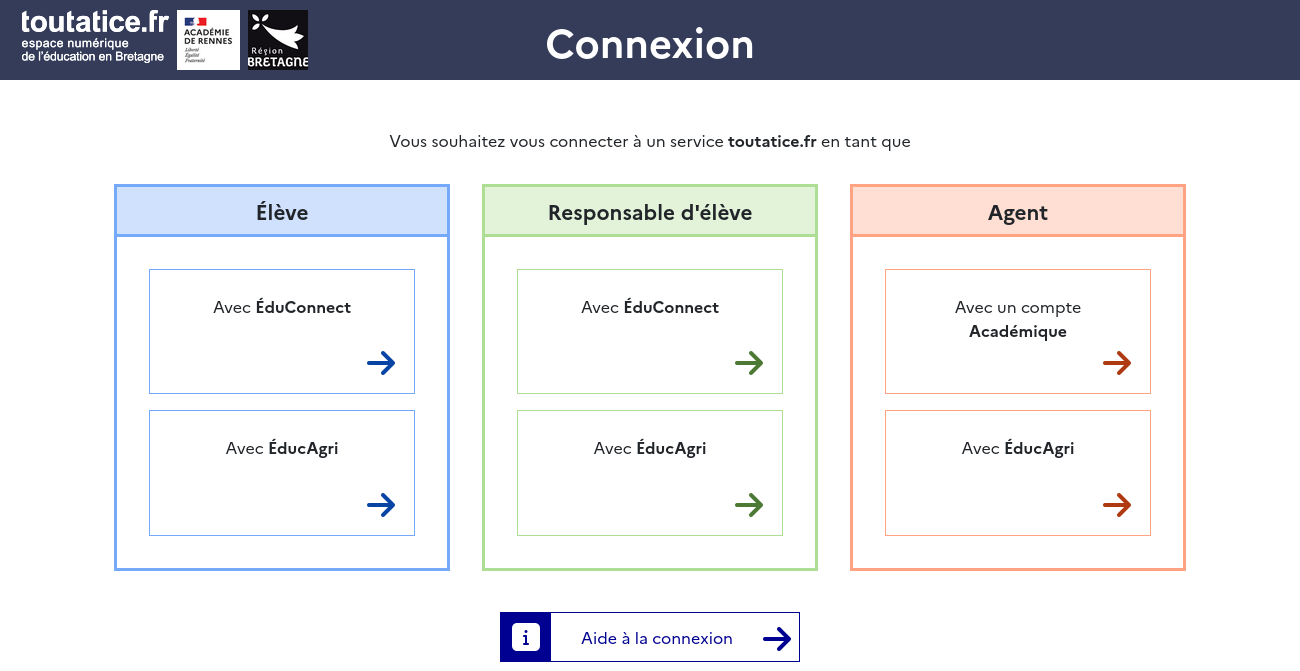 Vous arrivez sur cette page, qui vous propose différents modes de connexion, selon votre profil :