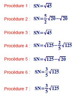 Le calcul de la longueur SN peut être menée selon différentes procédures (décrites ci-dessous) et le résultat obtenu peut avoir différentes formes. C'est de la confrontation des différentes formes qu'émerge la nécessité de règles de calcul avec les radicaux.